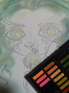 読んだ時からその小説の映像が頭の中に出てきて、溢れて、止まらなくて、どうにもならない状態だったので、スケッチブックに鉛筆で書き始めて、パステルまで持ち出してしまいました。
